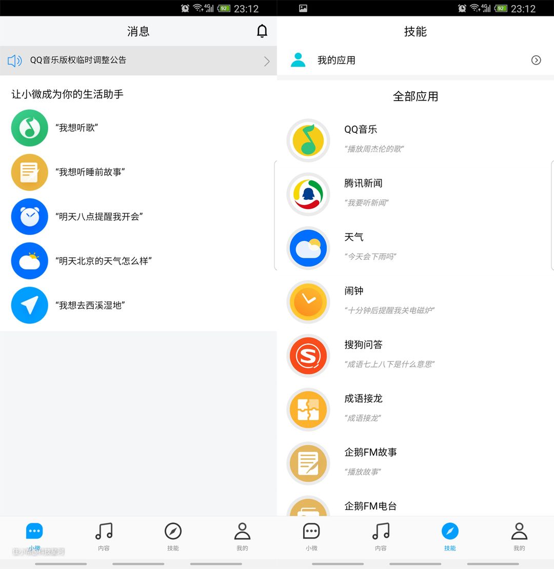 腾讯云小微深度粘合了QQ音乐、搜索、腾讯新闻、搜狗问答、企鹅FM、腾讯翻译、微信QQ、腾讯视频等等功能。