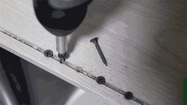 直接向木头内打自攻钉,木板上有个小沟槽,相对降低了难度,此时我已经适应9.2N·m大扭矩,拧的很平稳了。