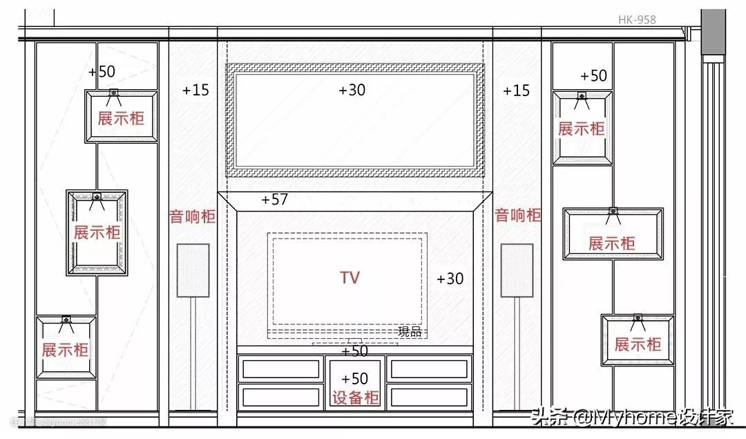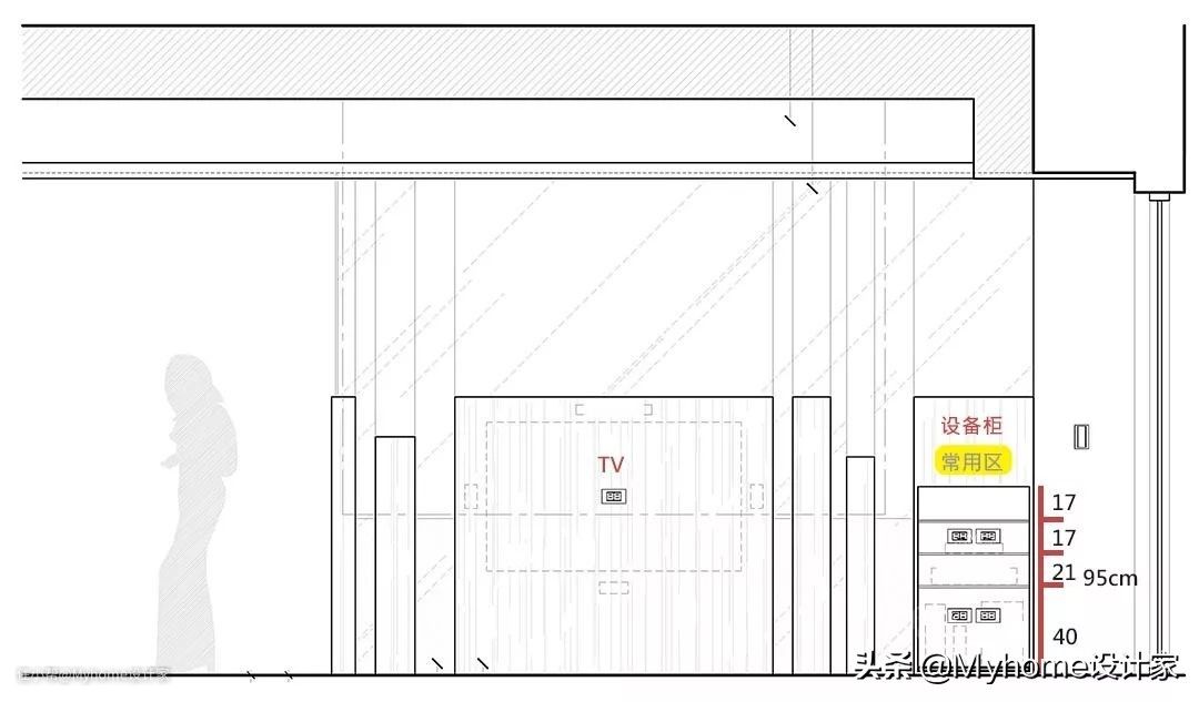 设备柜:安排在电视左侧,视听柜每层高度约为20厘米就够用。