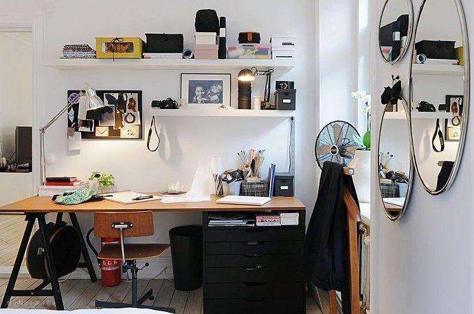 所以如果有可能的话,把椅子和桌子的调转一下。背靠墙壁办公,一抬眼就能把整个房间尽收眼底(但是一定要保证房间里的安静,不能让人在书桌前面走来走去)。