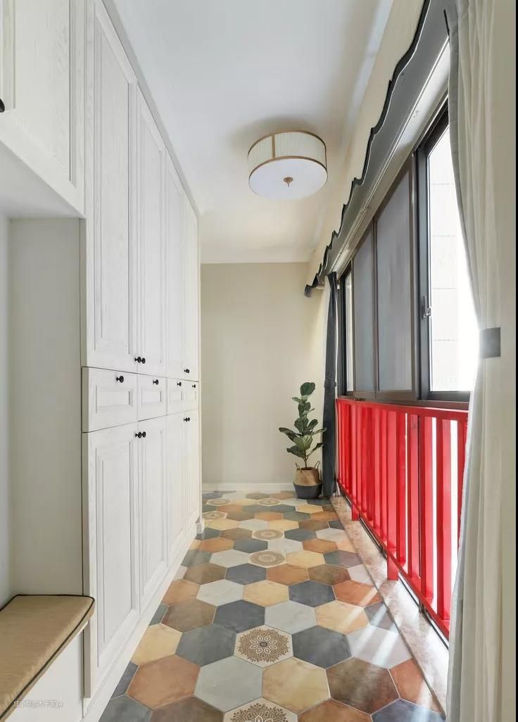 阳台墙砖的铺贴高度建议最低铺到1.5米,甚至可以把整个墙砖的铺贴贴到顶。而且要做好防水处理,特别是要做阳台柜,防潮而且耐用。