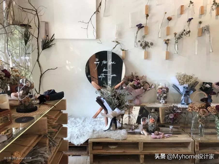 且栈板空隙还能作为收纳花材的空间,亦或置入空瓶罐打造每个座位区的独特造型,来过店内的客人皆留下深刻印象。
