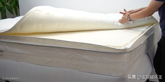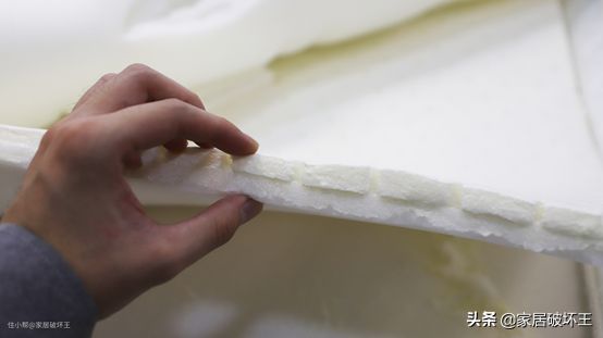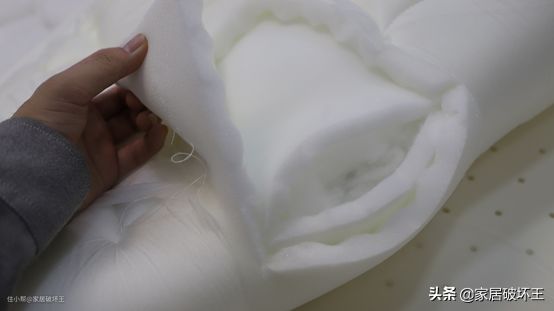 绗缝层下面的辅垫料主要是海绵+乳胶,有点像我们之前拆过的宜家费兰床垫,都是把两种材质粘在了一起。