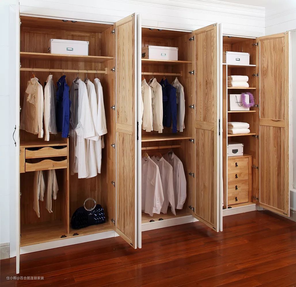 同时,根据衣橱的尺寸和衣服放置方法(悬挂或折叠),考虑是否需要在衣橱内安置小隔板,把衣橱以最合理的方式组合。