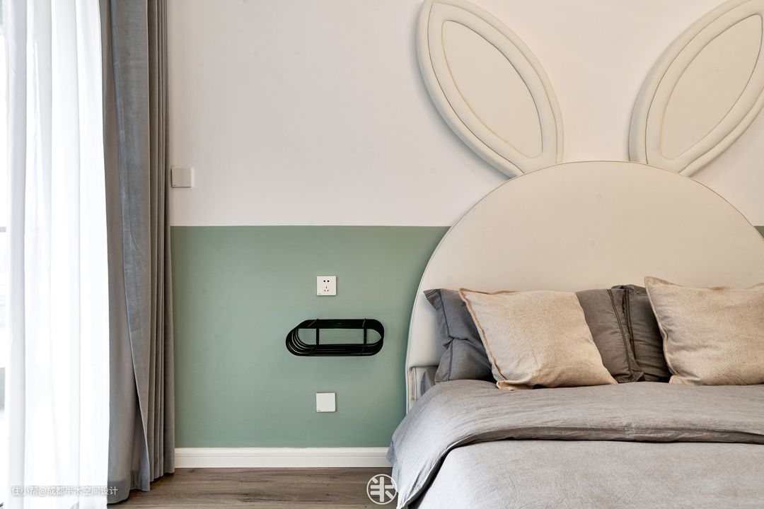 ▲兔耳床配上淡绿半墙,这只“小兔子”似乎一下子活泼生动了起来。