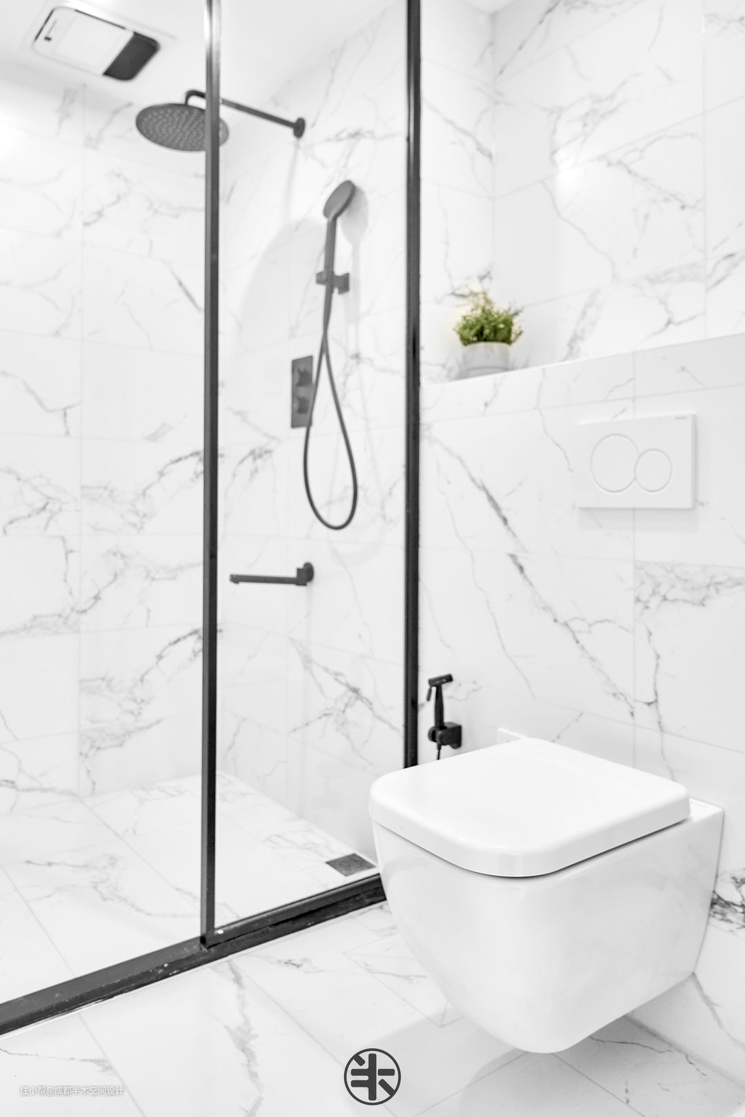 ▲客卫内部墙地砖都采用了雅士白大理石纹,清净高雅。可以说是处女座洁癖患者一眼就爱上的卫生间类型了~