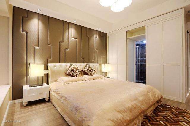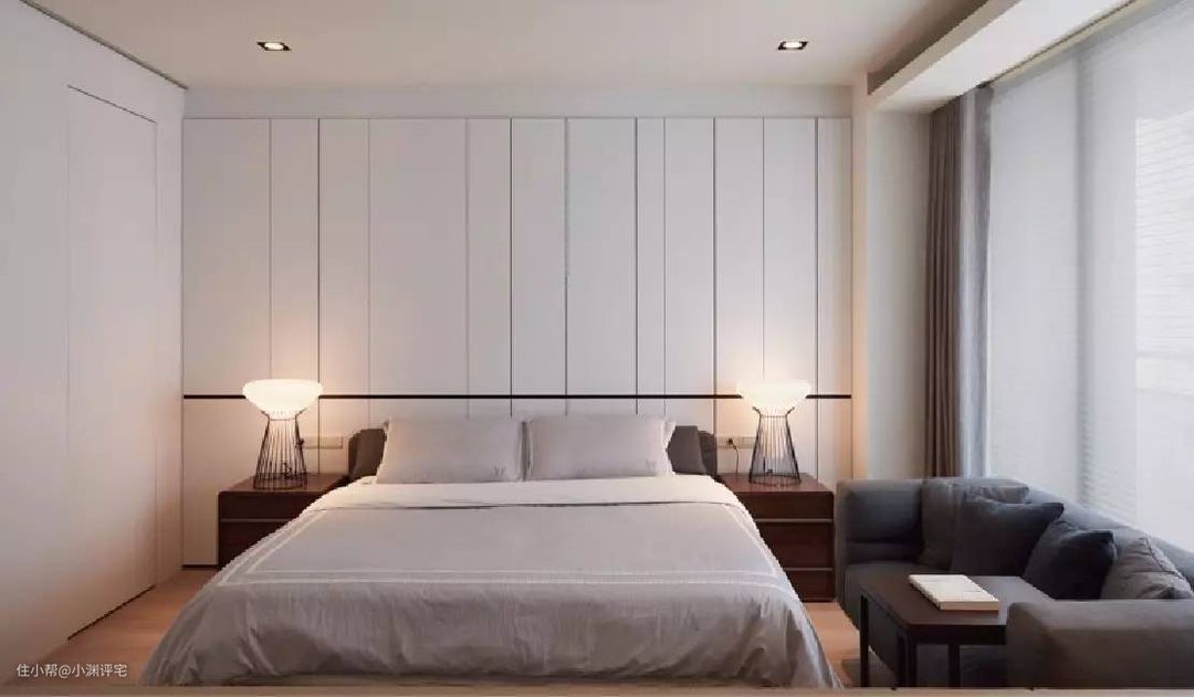 一层门不够,我们还可以多做几层门。比如在卫生间门所在的墙面上做定制衣柜,并在衣柜中间预留出卫生间入口的位置。这样衣柜一道门,卫生间一道门,基本上卫生间门对着床的问题,也就解决的差不多了。