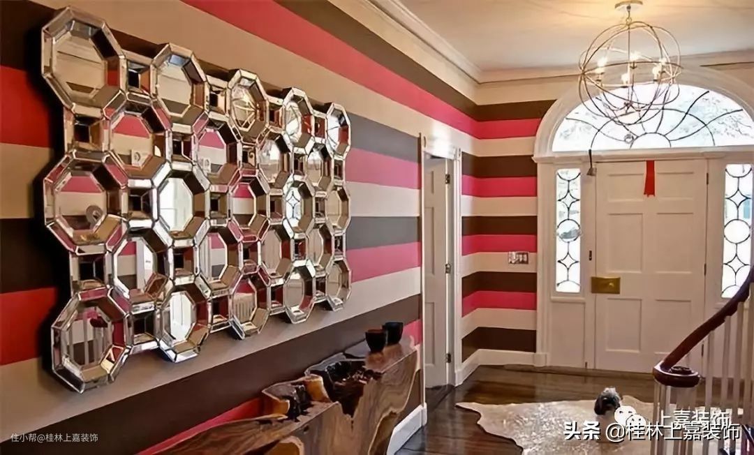 镜子确实是该门厅的标志性作品。在条纹墙上看起来还不错。