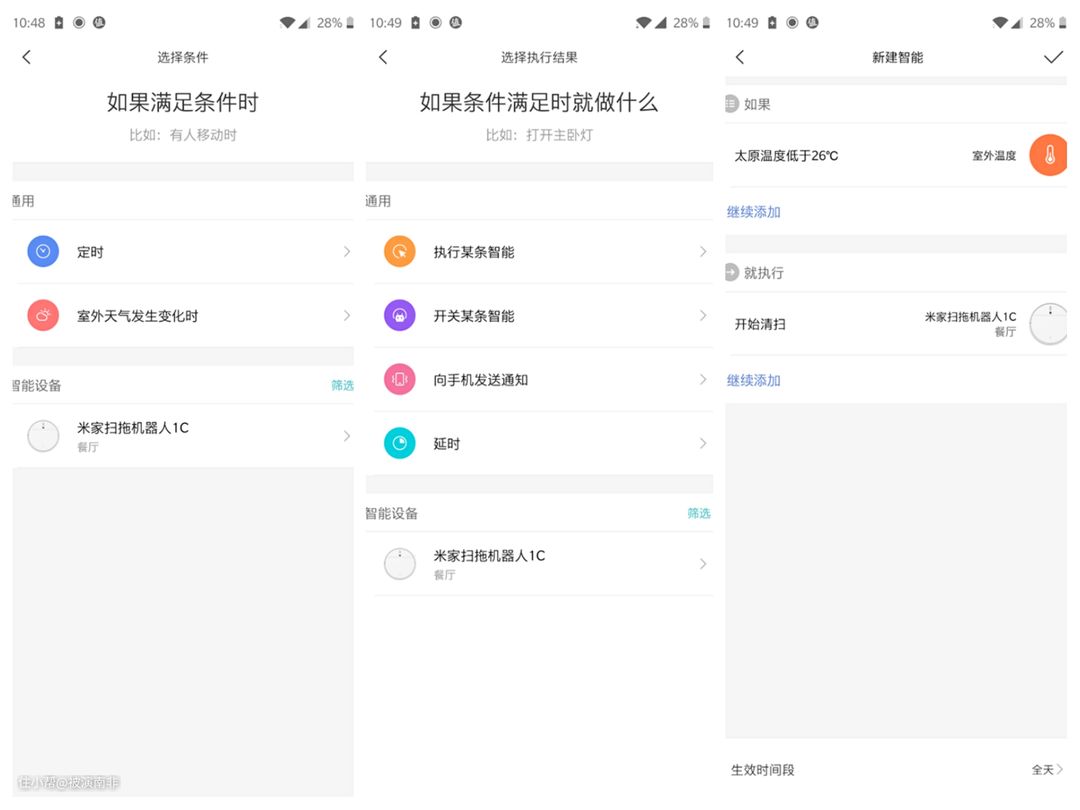 扫拖机器人1C还有这不错的智能控制能力,比如可以设置室外天气发生变化就能执行扫地机器人的工作,感觉科技感十足