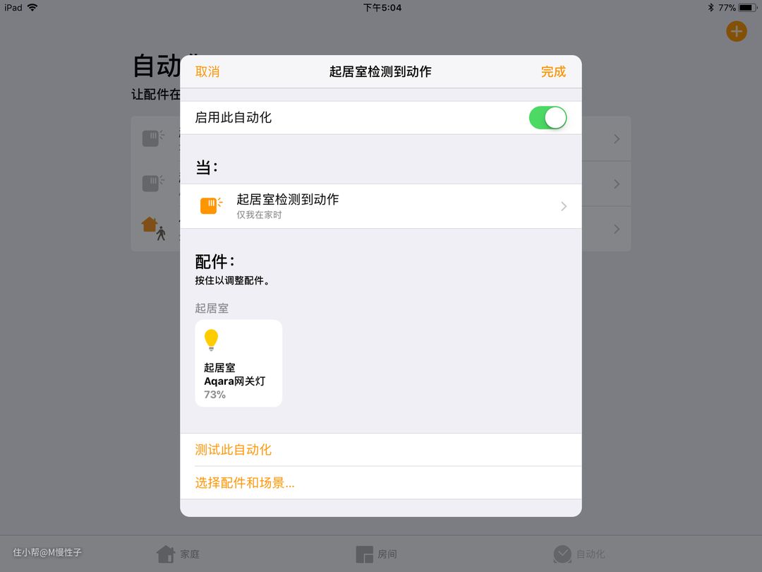 要让homekit的设备能自动化、远程操控,必须在家布置一台支持ios11以上的ipad或者Apple TV的4代。原因在于homekit体系产品操控不存储在云端,全部是本地化的,而这里的ipad就充当一个网关的角色。设置也很简单,只需在设置中勾选【将此ipad作为家居中枢】即可开启自动化。