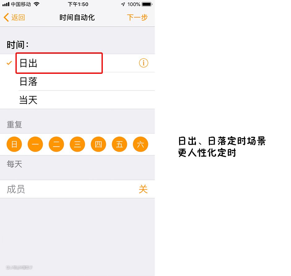 4.日出日落定时,时间更精准。比如开灯和光关窗帘的定时场景,使用日出日落来判断光线,比简单的时间定时要精准和简单的多。
