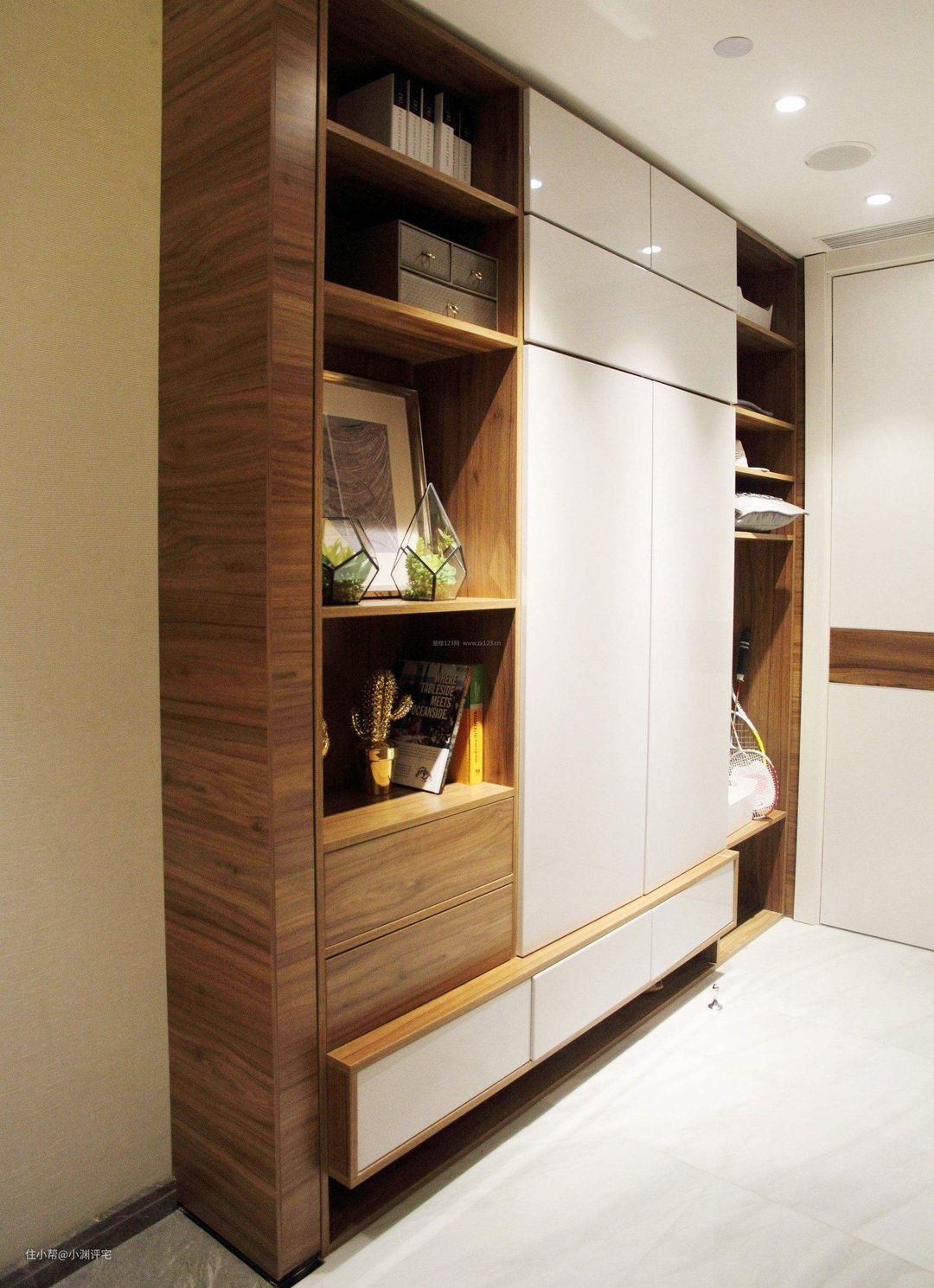 像橱柜、玄关柜这些地方,都是比较喜欢在柜子上安装灯具的。这套灯具的安装,应该由定制家具厂家负责。