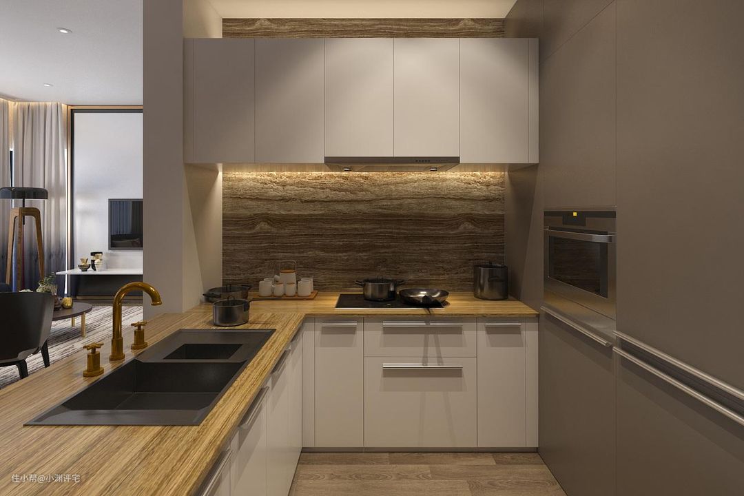 柜子和天花板的交界处怎么处理?任何时候,柜子都不会正好接触到天花板的,为了防止制作时产生误差装不进去,也为了防止安装后柜子由于热胀冷缩产生些许变形。
