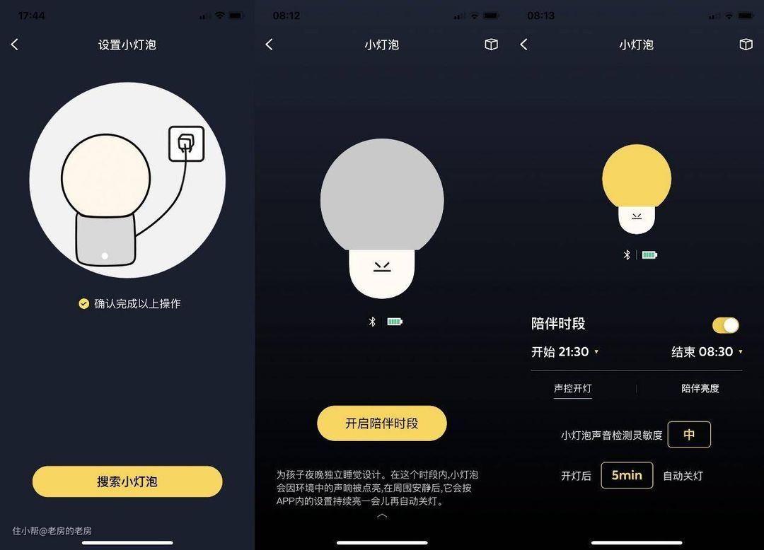 好多民宿并没有像酒店那样灯具齐全,这个时候小灯泡也就变成小夜灯了。说到小夜灯,就不得不提到小灯泡另外的一个重要功能,就是智能控制的“智能模式”。通过蓝牙连接 PUPUPULA 手机APP,设置好“智能模式”的起始时间后,小灯泡就变成了一个声控灯,晚上入睡后如果起夜,小灯泡感知到声音后就会自动点亮。