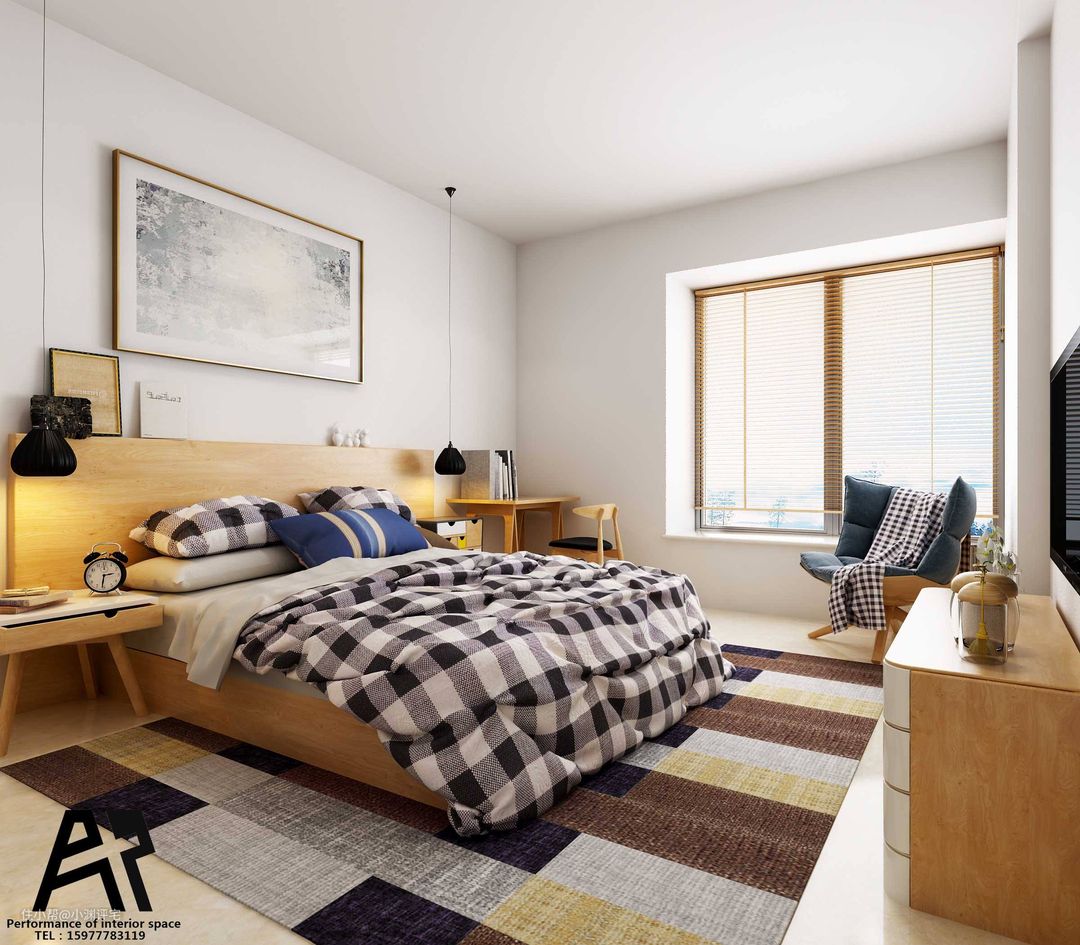 如果是两个人睡,1.5m的双人床也是可以的;如果只有一个人睡,一张1.2m的单人床已经足够了。适当缩小床的尺寸,既能降低床对空间上的视觉压力,让房间显大;同时又能预留出更多的空间给其它家具,让卧室变得更实用。