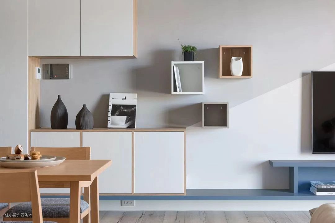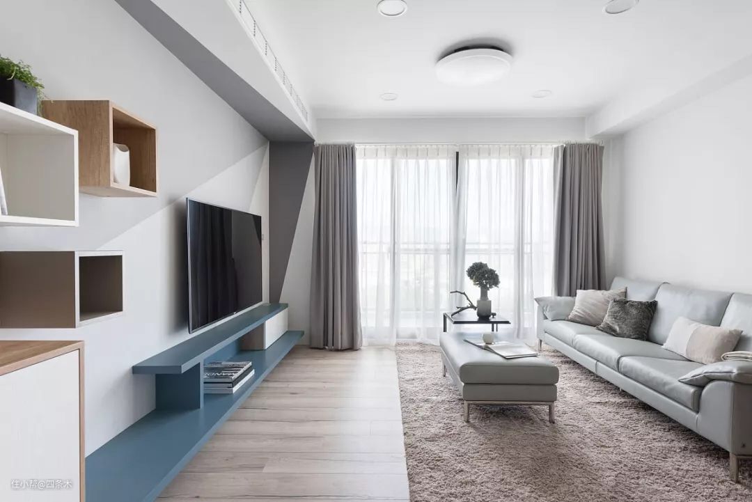 小户型北欧风装修,客厅电视背景墙拼色设计,光线通透明亮