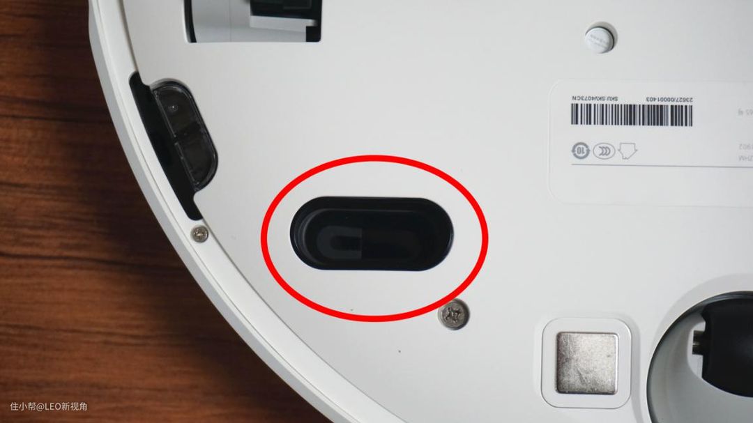 底部还有五个传感器,边上四个是悬崖传感器,也就是常说的防跌落传感器,可以在高台工作时,可以有效防止跌落。另外在边刷相对的另一边是一个运动追踪传感器,主要是用来通过和视觉传感器配合,规划路线。