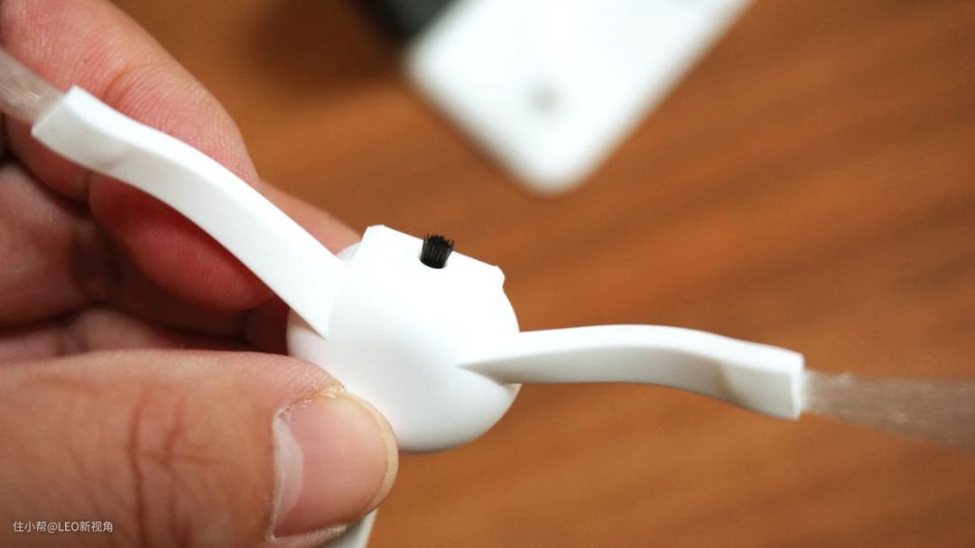 在使用前,需要自己手动安装边刷,安装完后,可以看到边刷上的小刷头设计,真的是太妙了,在实际使用中可以有效减小头发缠绕不易清理的烦恼。