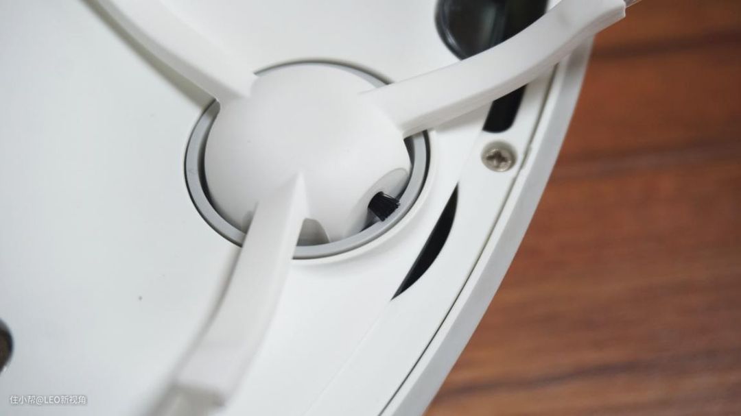 边刷采用的是三脚的结构,这个和大部分的扫地机器人边刷类似,不过仔细看,还是发现有很多细节值得肯定的。比如在边刷中心安装帽上,可以看到有个黑色的小的刷,这个可以有效防止缠绕和刷子固定位置周边的清洁。另外,边刷的三个脚都是硅胶材质,用过扫地机的都知道,在清扫一些桌脚时,如果碰到有缝隙,如果是硬的刷,刷毛很容易卡进,而采用硅胶材质,就大大减少了这个风险。