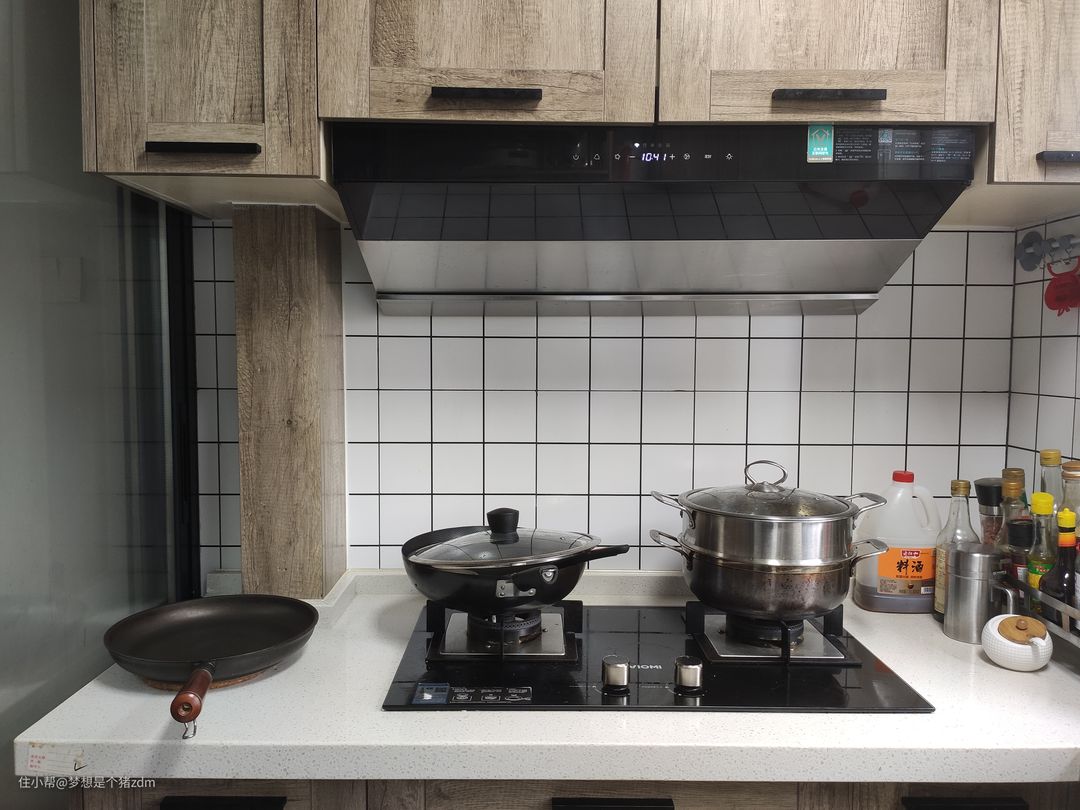 比较喜欢的一个功能是烟灶相互联动自动排风,火越大油烟机的吸力也越大,完全不用自己调节,平时爆炒湘菜,确实是重油多烟,但是就算不关上厨房推拉门,餐厅里也并不会有很明显的油烟味。