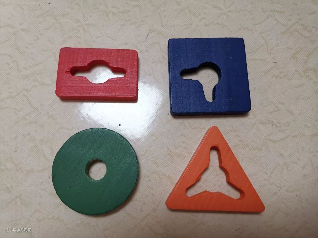 一般来说有四种形状,长方形、正方形、圆形以及三角形,除了圆形的不好安装以外,其他形状都很方便套上,我家孩子喜欢转着玩。