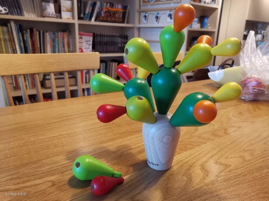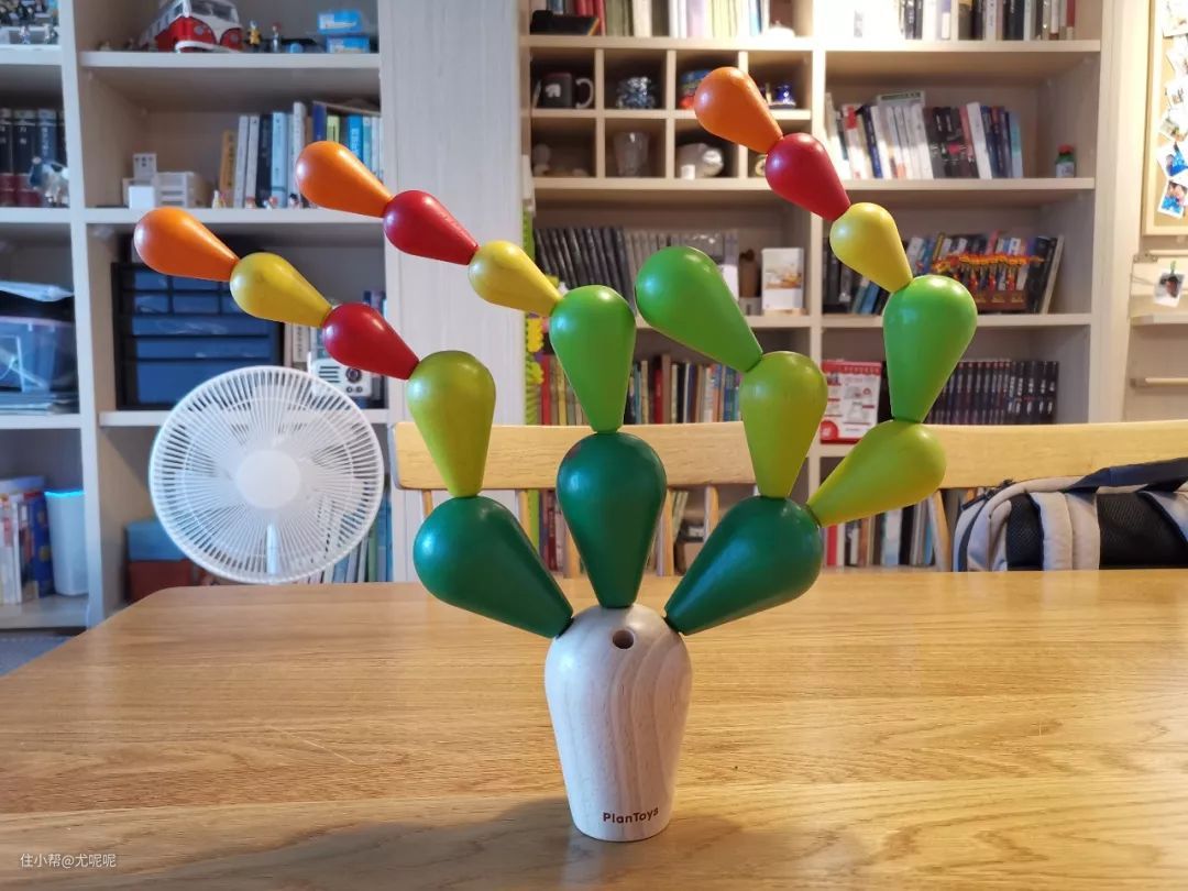 PlanToys仙人掌树是一款经典的平衡类玩具,有迷你款、正常款和低能量色款。个人还是最喜欢经典款的配色,相对来说更加的多彩有助于引起孩子的玩耍兴趣,同时当做摆设也十分的优雅。