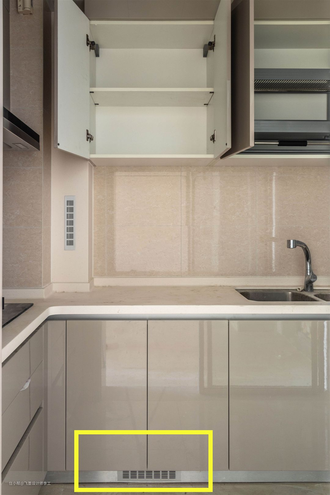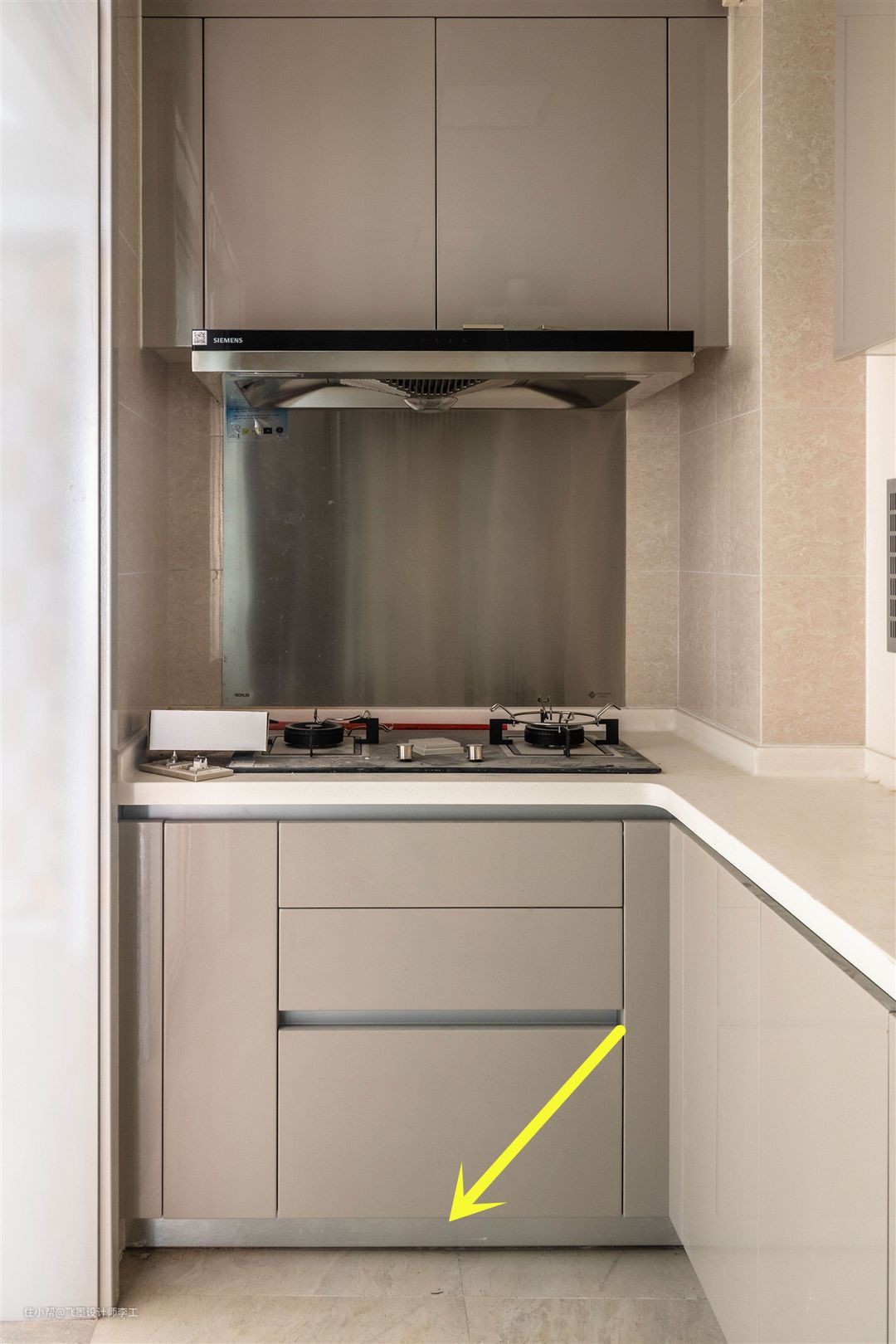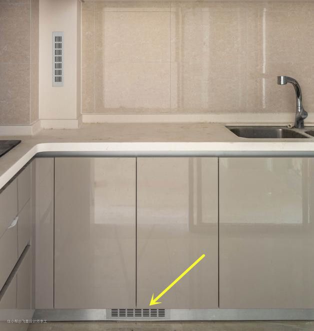 朋友表示大部分家庭橱柜踢脚板是封死,这样能够给清洁带来便利,也能够防止柜体内部有积水问题出现。而朋友家踢脚板留了个孔,主要是考虑到橱柜底部走燃气,所以必须留孔才行。