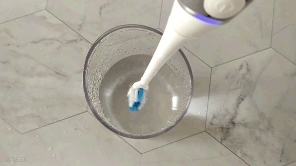 官方建议的至少每周对刷头进行一次杀菌,保持牙刷头干净卫生。具体的操作也是非常的简单,将牙刷头取下来后倒放在刷头杀菌烘干区,插入后2s即可开始工作,杀菌烘干总共需要30min,15min的杀菌消毒,15min的烘干,全自动化,非常的方便。