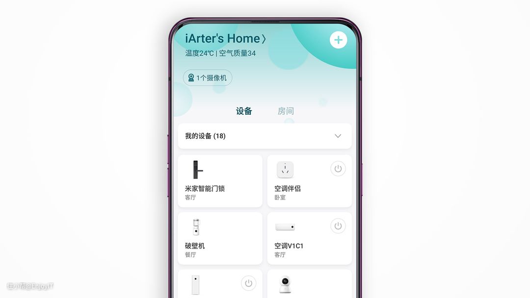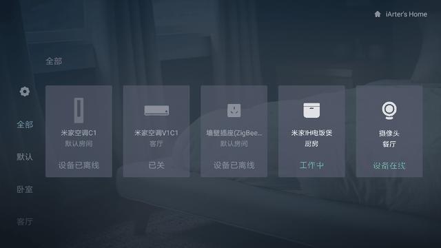 说完优点说说缺点,这个TV版的米家APP仅有一小部分支持在投影上操作,看我手机上的米家APP,已接入米家APP的有18个设备,明显不只投影上显示的这么点米家设备,这更多的米家产品依然只能通过手机版米家APP来操作,推测可能是不方便遥控选择的暂时还没适配到TV版上。
