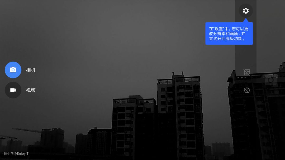 避免画面重影,好奇的拿着投影到窗外,打开了相机APP,看到了类似手机的拍摄界面,取景画面是左右相反。