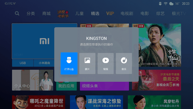 之前的极米或许是因为把自己营销归类为无屏电视,导致不太方便直接提供U盘安装APK文件,而这里的MIUI TV版最大优势体现在插入U盘可以直接读取存储的APK文件安装。结合2+32G的大存储组合,让投影有充沛的空间安装和运行第三方APP,家里的客厅的风行电视仅有1G运存,其实1G也不是不能用,关键是FunUI优化的相当差,只要有安装第三方APP,运行绝对卡的你怀疑人生。