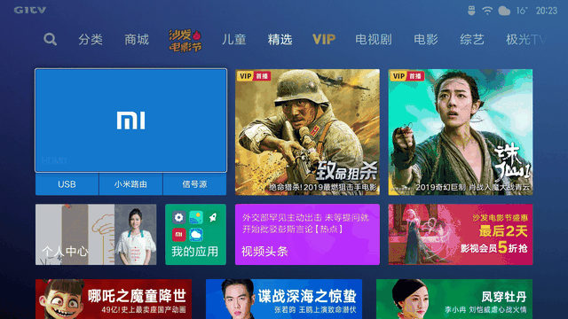目前市面很多大屏系统乏善可陈,甚至可以用粗糙来形容,你们可以风格老旧,但至少各元素的风格要一致啊。智能投影上用的定制系统还能入我眼的除了极米的GMUI就是小米的MIUI TV。就单说界面的UI,整体配色布局和ICON的协调设计,真的难见到比它们做的好的,尤其是MIUI TV,毕竟是有MIUI的手机ROM的视觉继承,水准自然还是在线的。首页精选标签里左上角的几个内容输入源中也支持画中画,并且提供我的应用快捷入口。唯一的缺点就是进入桌面后的这些顶部频道标签不支持自定义,我知道产品经理的担忧,害怕开放自定义标签头,用户精简的只剩下应用标签,那可能会导致点击率的丢失,但可以学习下GMUI,除了坚持你们认为最重要的几个标签,剩下都允许用户自定义,这样才是真正的尊重用户。
