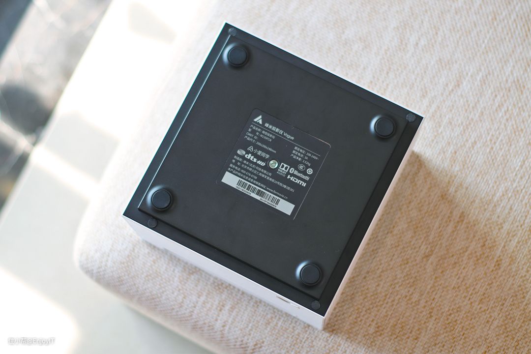 峰米Vogue 不像极米和其它投影产品直接提供了纯音响模式,但并不是完全没有,你可以点击电源键并切换到关光机模式,此刻投影镜头的光源就熄灭了,而你正在播放的音乐或者MV等视频会依然继续从扬声器出来,也可以当作音响模式使用。此刻投影的喇叭音质好坏就决定了你的使用体验了,Vogue配备了双 10W、1.75 寸全频高保真喇叭,45×80mm大尺寸被动盆设计。按照官方描述词汇显得的相当给力。不过我对这喇叭有不一样的看法,因为一打开刚听的时候觉得有些松散干瘪,但放了大半小时却觉得有点顺耳了,推力也够使,但依然不够抓耳朵,和一些专门调教过音箱的投影还有些距离,具体表现在三频层次分离度不够,低音的下潜度表现一般,这么大的空间足够设计给予一个不错的腔体,这声音理应有更好的调教空间。也有可能是我其他投影用的多了,会有先入为主的观念,但确实没那么出彩,声音环节我把它归属到智能投影的中游水平吧。