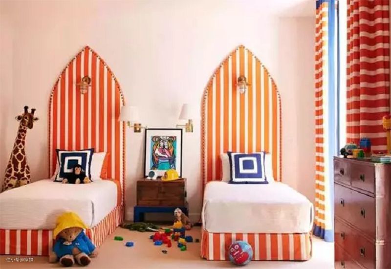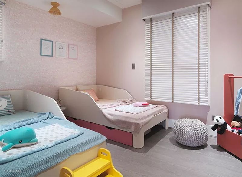如果家里是一个男孩一个女孩的话,在打造儿童房的时候,会稍微麻烦一些,要让彼此有各自的空间,空间大的话当然好,可以隔成两个不同空间,空间小的话也没关系,可以用拉帘进行隔档。