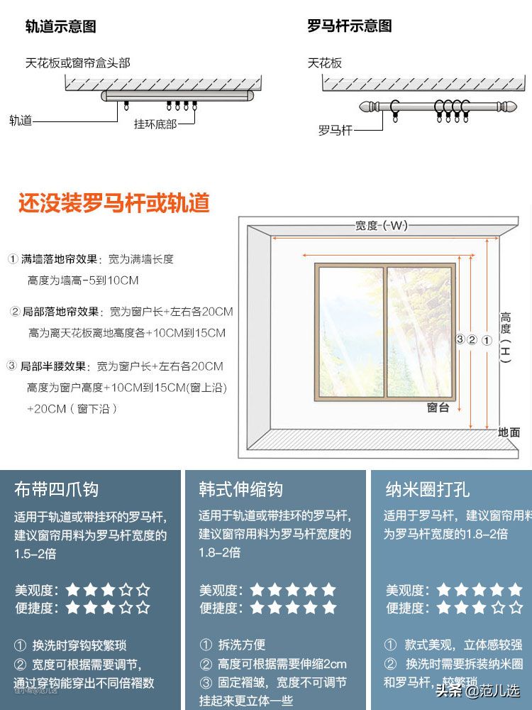 ②没有做整面墙窗帘的,宽度按照轨道、杆的长度量尺寸,高度同上面一样。