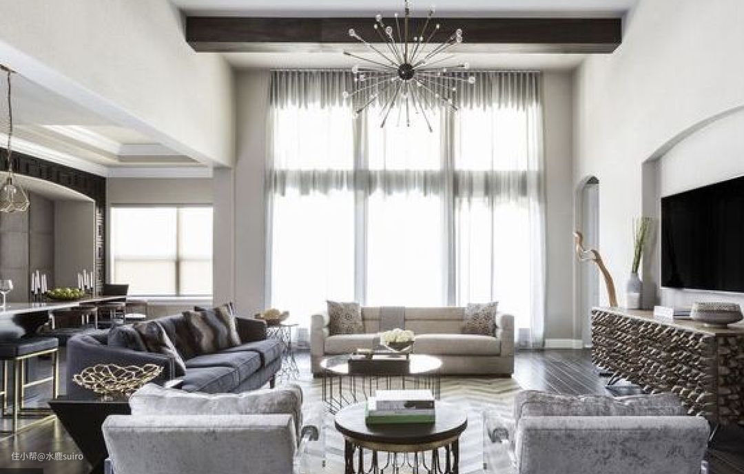 客厅的窗帘与沙发同色系,从上到下由浅变深,也更富有层次感。