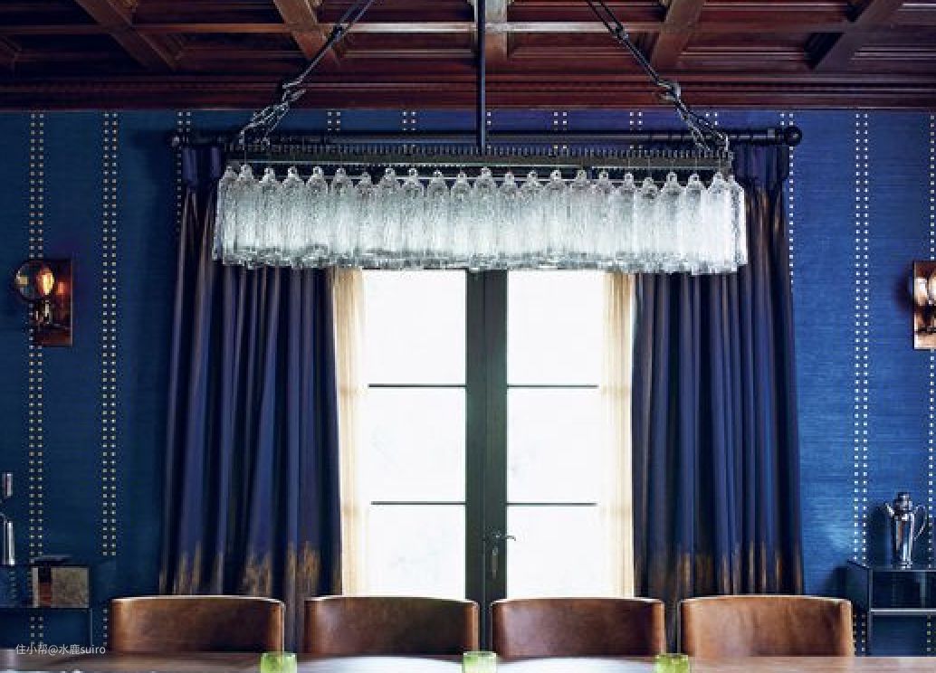 在这个蓝色的客厅里,选择与墙面同色系相配的蓝色窗帘,本来就很大胆的空间,更增添了质感。