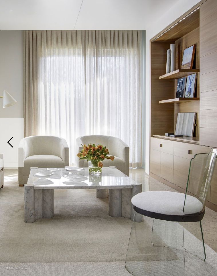 窗帘最经典的配色就是与墙面颜色一致,这样能把窗户区域与墙面融为一体,让空间变成一个整体,没有了色彩上的分隔,让空间看起来更大。这个配色特别适合卧室或空间小的客厅。