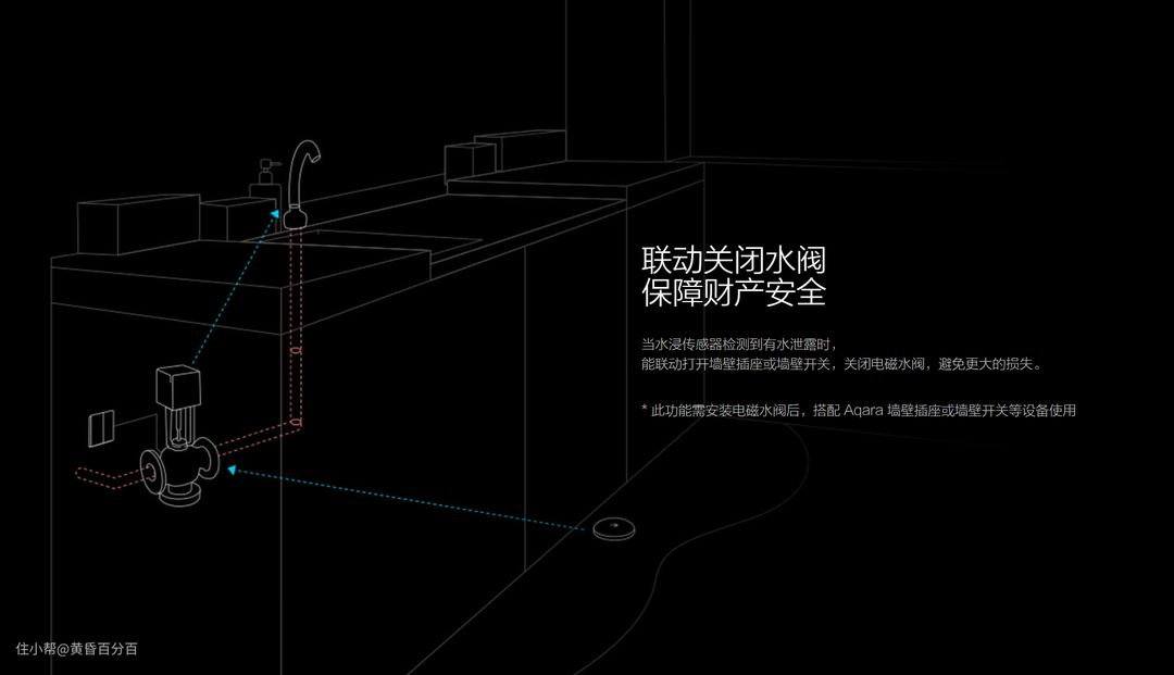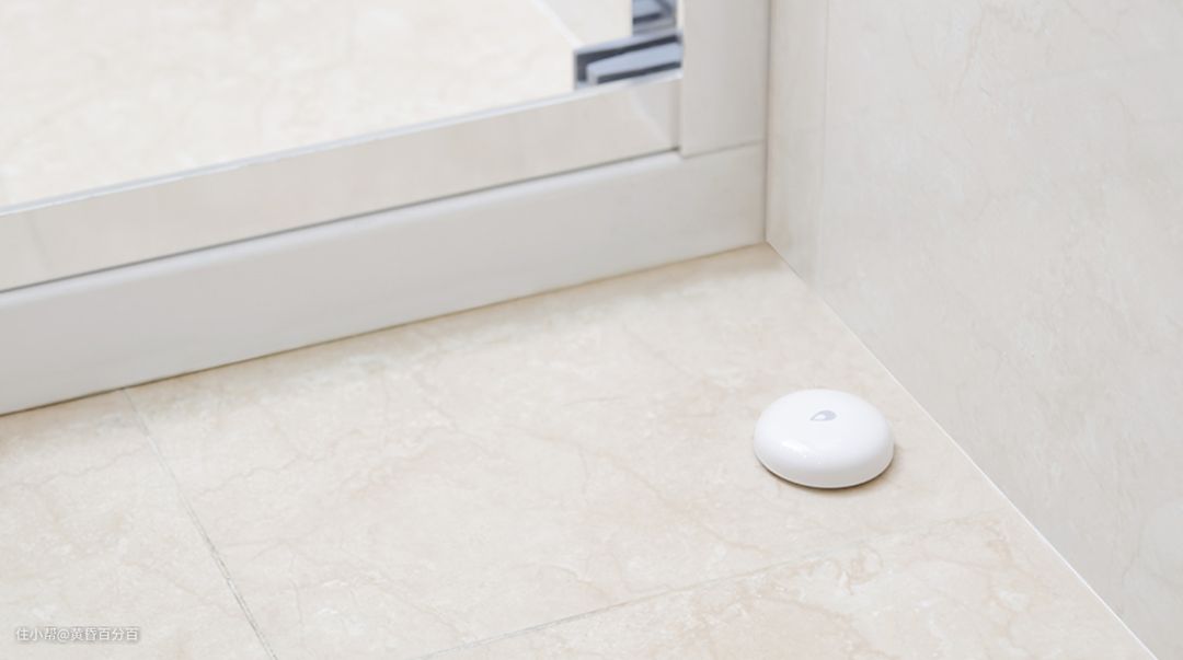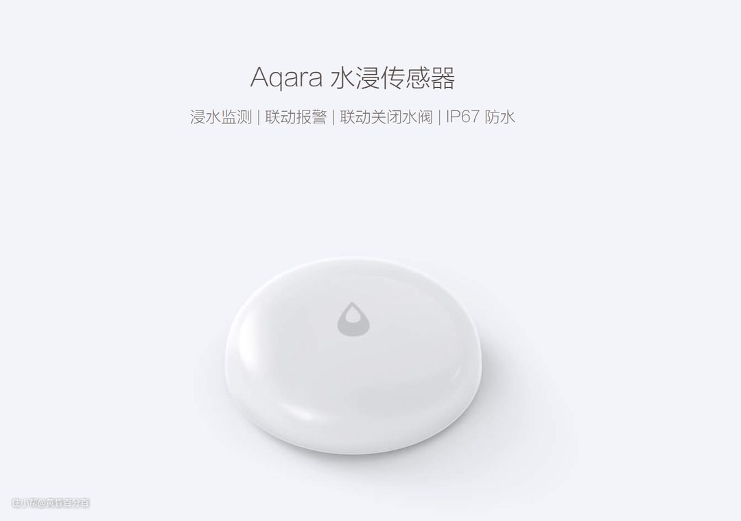 ▲Aqara水浸传感器,可以做到浸水报警,以及联动关闭水阀功能。