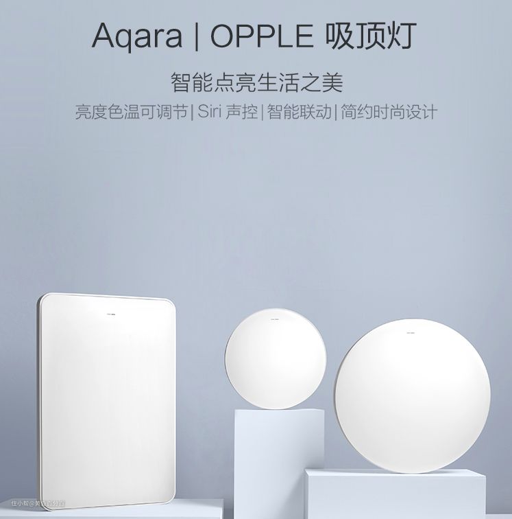 ▲当然,除了智能灯泡,还有Aqara和OPPLE联名发布的吸顶灯也是非常好的选择,适合放在书房,卧室,甚至客厅。OPPLE 欧普照明的商品价格适中,设计简约,品质上乘,一直是家用照明的可靠选择之一,在和Aqara联名后推出的三款吸顶灯更是支持亮度色温调节以适应不同场合,还支持HomeKit智能联动与Siri声控,算是HomeKit智能家居中不可缺少的一环。
