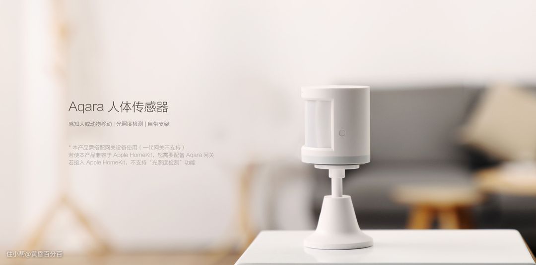 ▲Aqara人体传感器,能够感知人或者动物的移动,所以能够做到人走灯灭,虽然现在接入homekit时并不能支持光照度检测,不过相信硬件支持的话,可以通过未来的软件升级进而支持。
