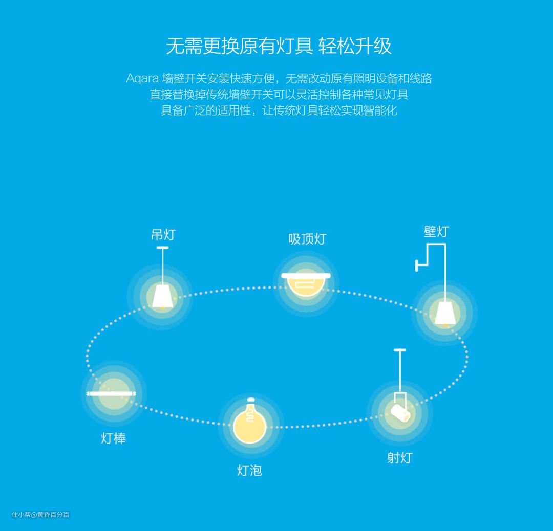 无论任何场景,首先需要让照明系统智能化,如果是新房装修,自然可以直接使用智能吊顶灯与智能灯泡,但是旧房改造的话,这种方式无疑成本有点大,所以用智能开关比较好,毕竟不需要对电路有任何改造。