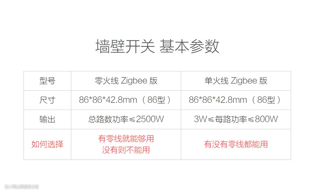 ▲需要注意的是家中线路是否有零线,如果有零线则最好买零火线版的墙壁开关,因为支持的总功率更高,但是如果没有零线的话,就选择单火线版的墙壁开关就好了。