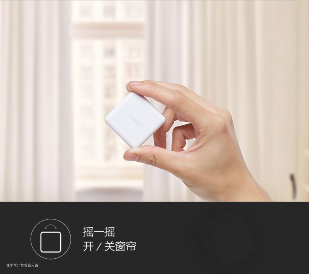 ▲当然,还可以用更便携(容易丢)的Aqara魔方控制器来控制窗帘的开关。