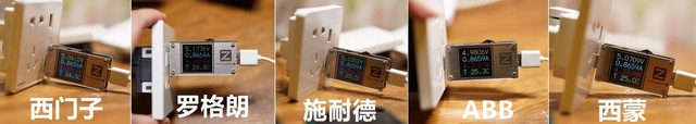西门子和施耐德标称都是3.1A,也就是说双口充电时候最多加起来可以达到3.1A的电流。而罗格朗和西蒙标称都是2.4A,只有ABB是2A,所以如果是想要充电速度快,首先看规格就可以排除ABB了
