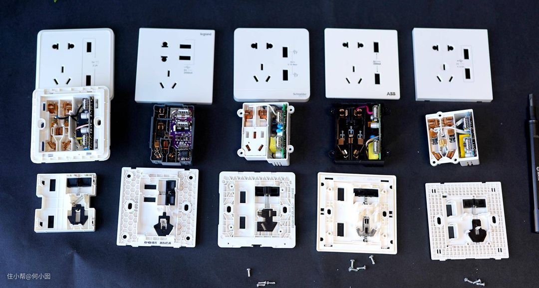 西门子没有明显的设计和用料缺陷,罗格朗扣分在后座材料和USB插口布局,施耐德扣分在五孔间隙,ABB扣分在后座材料和后座偏大偏高,西蒙扣分在后座偏高五孔间隙太小