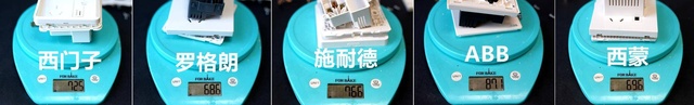 从重量上来看ABB 87.1g是最重的,罗格朗最轻,只有68.6g,另外三位差距都不太大