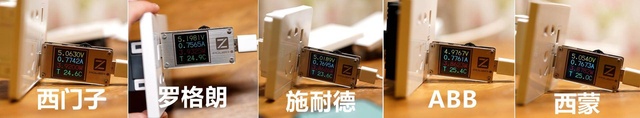 1加特别的握手协议让施耐德翻了车,只有1.12A 5.6W的输出功率,而其余的都有1.4A的输出电流,功率也在7.1~7.4W。