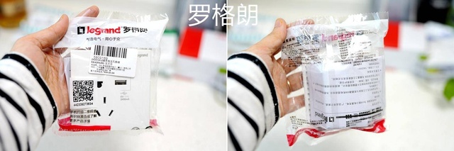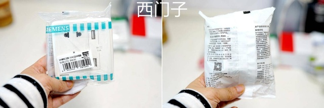 拆开包装袋之后,西门子、施耐德和ABB这三个品牌都是带插座表面塑料保护的,其中ABB是用的硬质保护壳,西门子和施耐德用的塑料袋,可以保证在安装之后,使用之前不会被保洁、搬运家具等磨花插座表面,而罗格朗和西蒙是没有做表面保护的