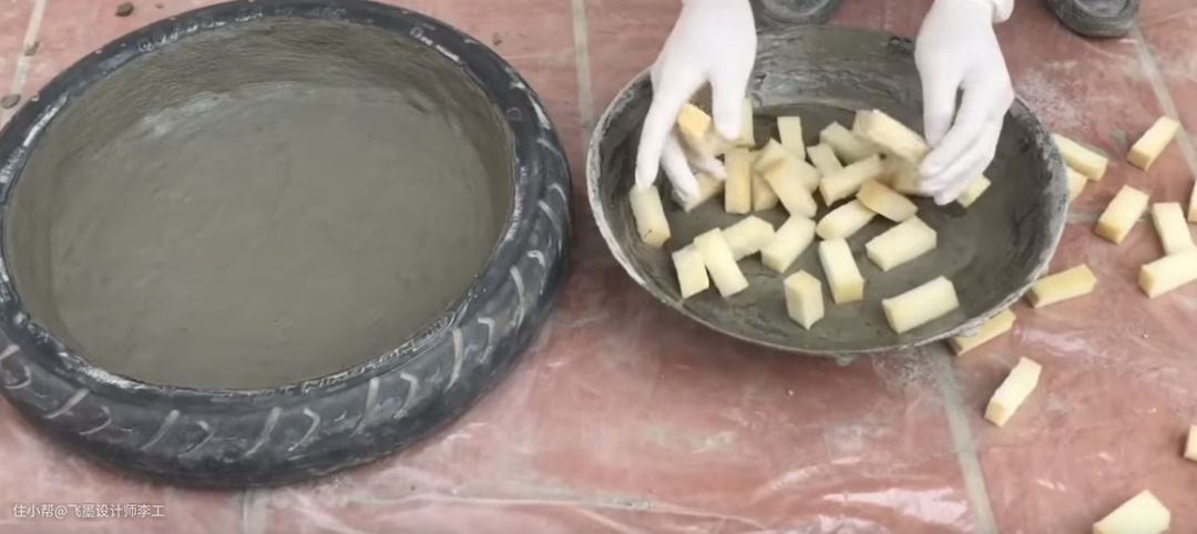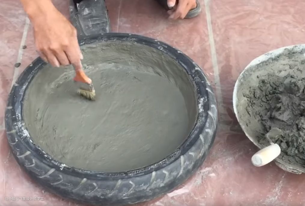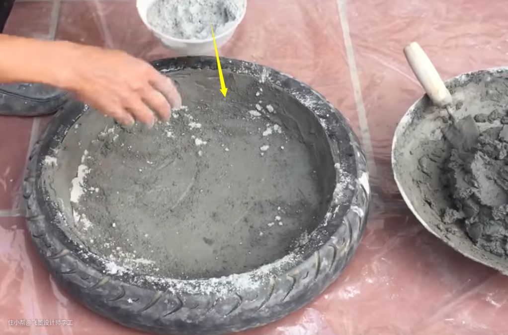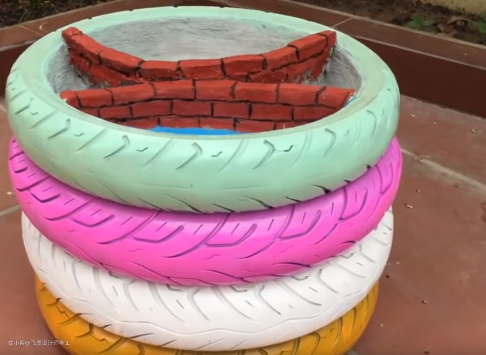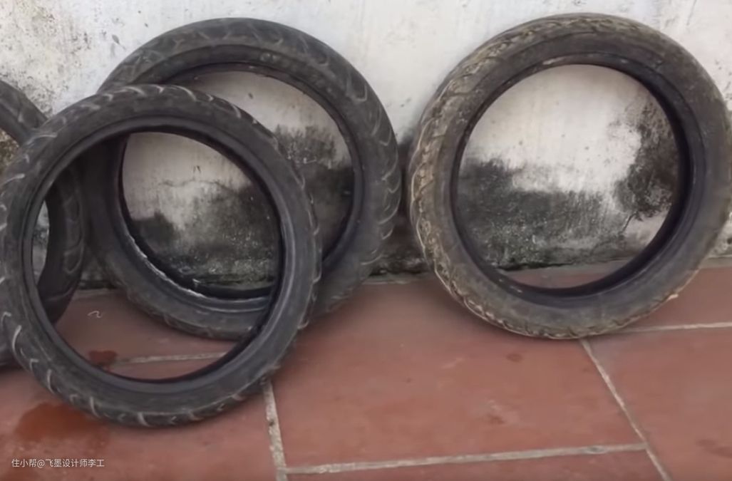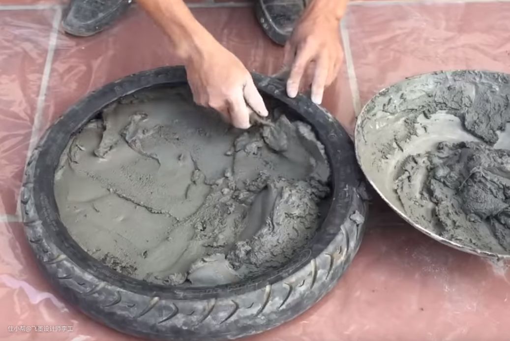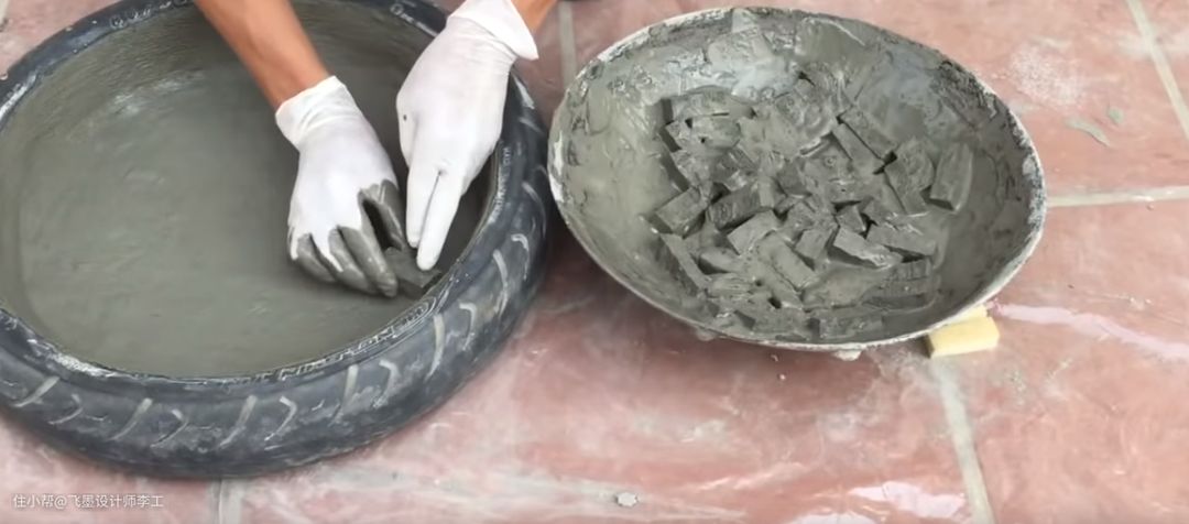 找来4个废旧小轮胎,用水泥砂浆浇个小花园,楼上邻居叫我再做个